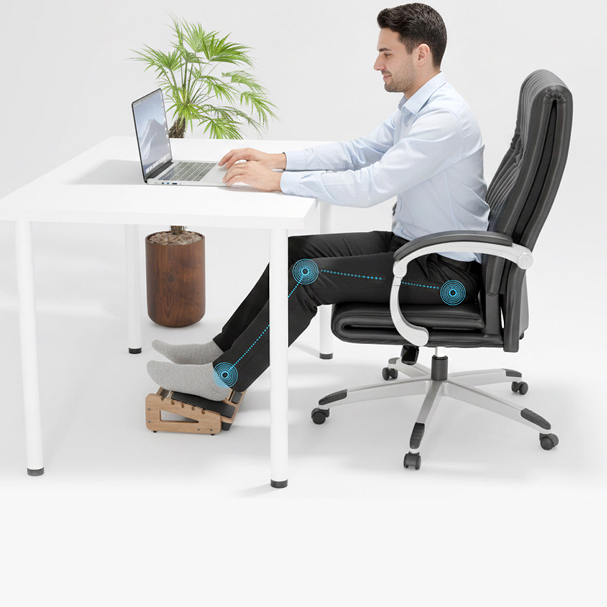 The Swing Rolrest is a smart, ergonomic footrest designed to transform how you sit and work. Featuring a unique dual-surface design, it lets you switch between a soft memory foam cushion for all-day comfort and a roller surface that gently massages your feet and improves circulation. Built with adjustable height and angles, it supports better posture, reduces fatigue, and keeps your legs active even during long hours at your desk. More than just a footrest, it’s a simple yet innovative solution to enhance productivity, comfort, and overall well-being.